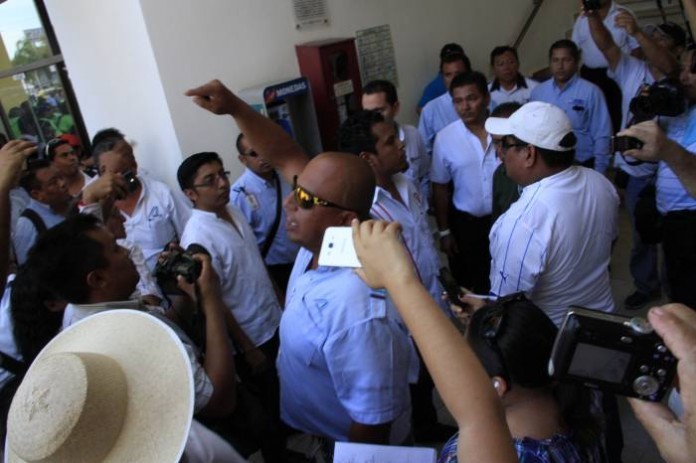 A pesar de la tensión, los trabajadores de ambos sindicatos se mantuvieron sin violencia y se limitaron a gritarse unos a otros, y para bajar el estrés tomaban pozol con cacao y agua fría, mientras otros hacían ruidos de animales como el de un gallo para que “despertaran los de la Junta”.