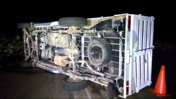 Al parecer, el vehículo regresaba de un partido de beisbol entre José María Morelos y Cancún, pero el conductor perdió el control del mismo, quedando el vehículo de costado.