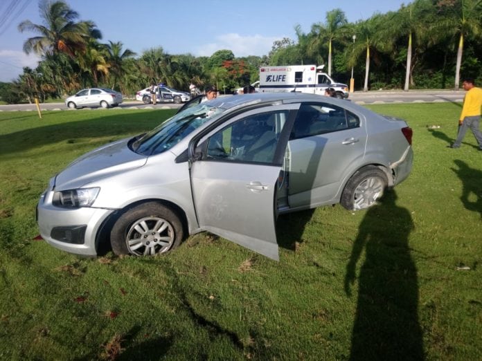 Presuntamente, el conductor circulaba por esta vialidad a exceso de velocidad, por lo que perdió el control del vehículo y se salió de la cinta asfáltica, volcando para luego terminar en el camellón con el carro en posición correcta, aunque con daños diversos.