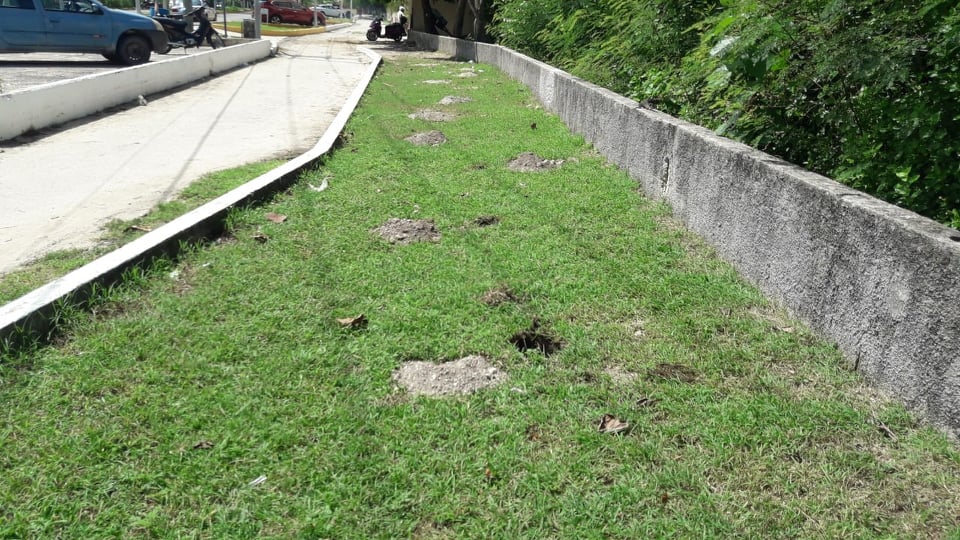 En el lugar fueron dejados unos agujeros, como para la instalación de postes, previo al tapiado del predio en cuestión; sin embargo, ya no hay trabajos activos en esta zona.