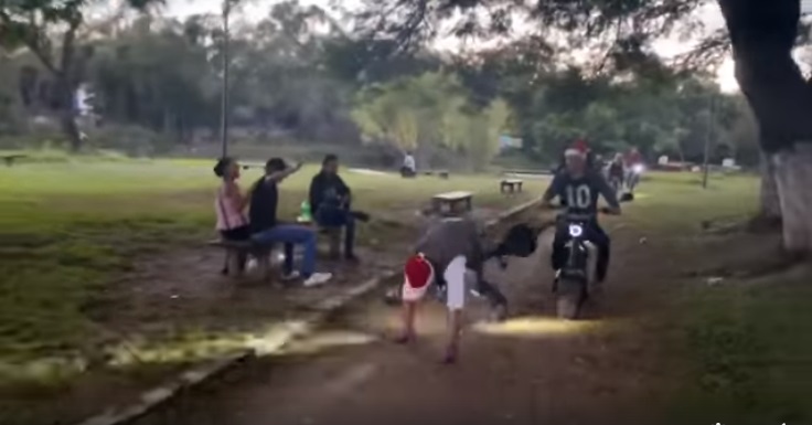 Resulta que mientras realizaba su recorrido por el parque de la entidad, se le ocurrió saludar a unos ciudadanos que reposaban en una banca y cuando intentó decir Feliz Navidad ya estaba en el suelo.