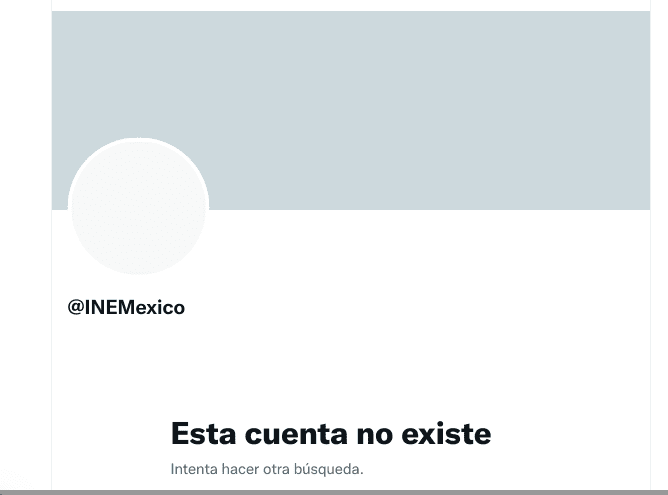 Y es que al buscar @INEMexico en Twitter aparece un mensaje que dice “esta cuenta no existe”.
