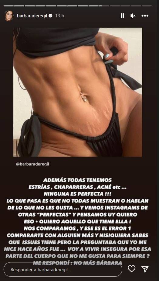 Bárbara de Regil ha compartido fotos de sus “imperfecciones” acompañadas de mensajes de aceptación, lo que le ha traído buenos comentarios. “Además todas tenemos estrías, chaparreras, acné, etcétera, ninguna es perfecta”, escribió.