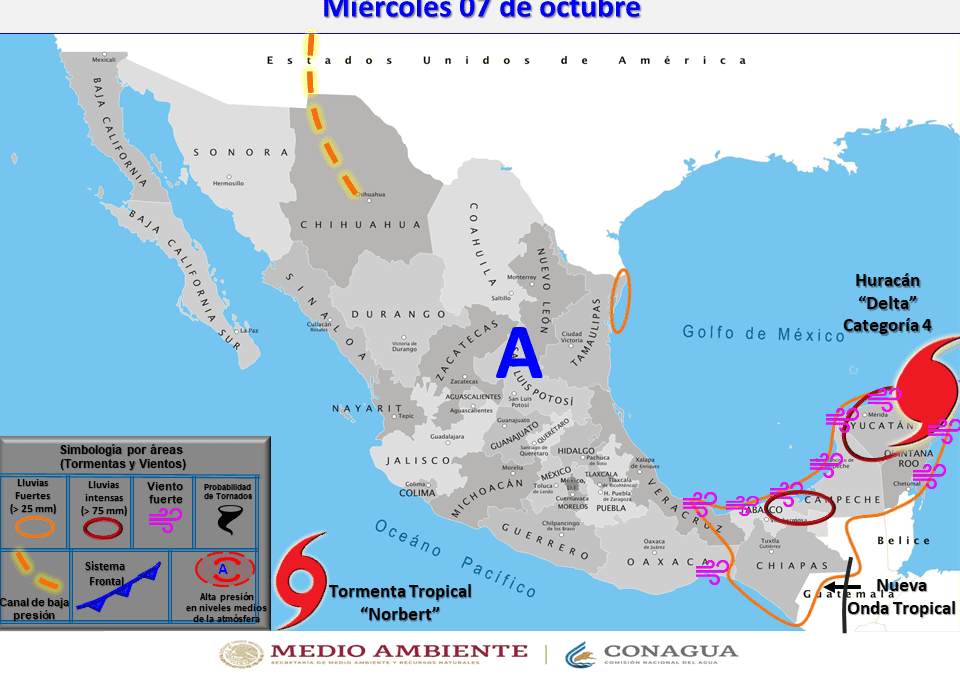 Mientras tanto Protección Civil de Yucatán informó que ante la llegada del huracán ‘Delta’, las autoridades mantienen alerta roja para la zona noreste, centro y norte del estado.