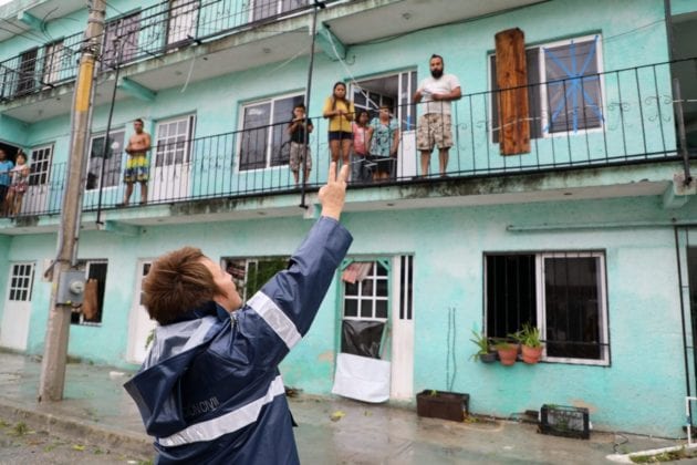 La munícipe informó que en respuesta inmediata para atender a la ciudadanía por el paso del meteoro, se desplegaron 111 vehículos y 600 elementos de todas las fuerzas policiacas, así como la Guardia Nacional, la Marina y la Sedena.