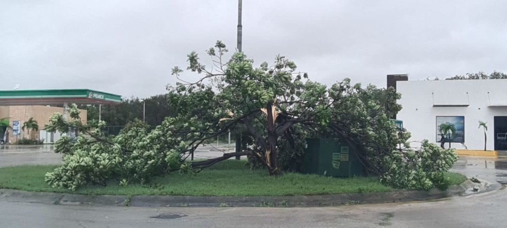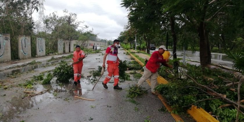 Playa del Carmen, Solidaridad, a 7 de octubre del 2020.-Desde tempranas horas de esta mañana, diferentes dependencias del gobierno de Solidaridad informaron que, hasta el momento, se reporta saldo blanco luego del paso del huracán Delta que se degradó a categoría 3 y, posteriormente, a nivel 2 al tocar tierra. Dejó a su paso una estela de árboles caídos y encharcamientos en algunos puntos de la ciudad.