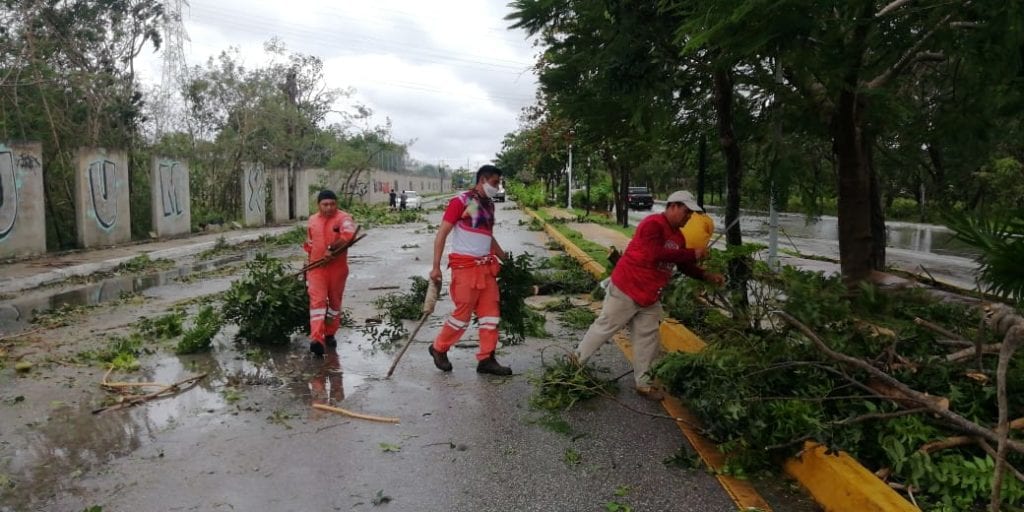 La presidenta municipal, Laura Beristain Navarrete, acompañada del titular de la Secretaría de Protección Civil, Prevención de Riesgos y Bomberos, Francisco Poot Kauil, recorrieron la ciudad para verificar las afectaciones por árboles caídos y postes, constatando que las cerca de 450 personas que se encontraban en los 10 refugios que fueron habilitados, se encuentran seguras con alimentos y atención médica.