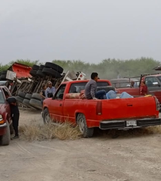 El camión se volcó en la carretera libre a Torreón, cerca del ejido El Porvenir ubicado en el municipio de parras de la Fuente, Coahuila.