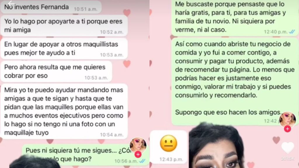 La discusión siguió, pues la clienta no entendía que Fer no accedería a maquillarlas por unas cervezas y hasta la insultó, así como a su trabajo, para finalizar la discusión deseándole lo peor a la usuaria de TikTok que tiene 274 mil seguidores.