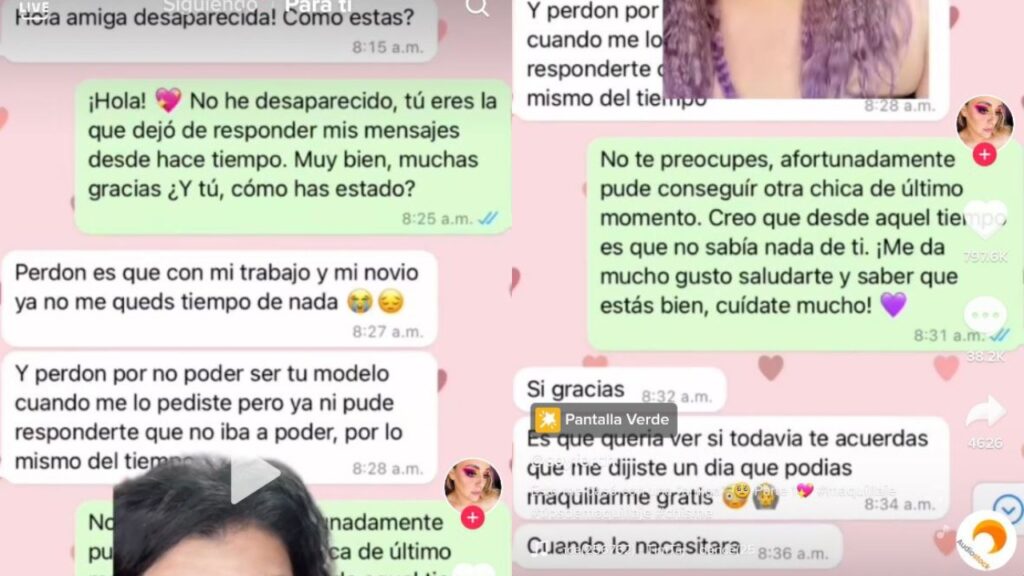 La historia la narró la propia make up artist en su cuenta de TikTok, donde la trilogía de videos titulada ‘De qué manera se quisieron aprovechar de ti en nombre de la ‘amistad”, ha superado las seis millones de reproducciones.