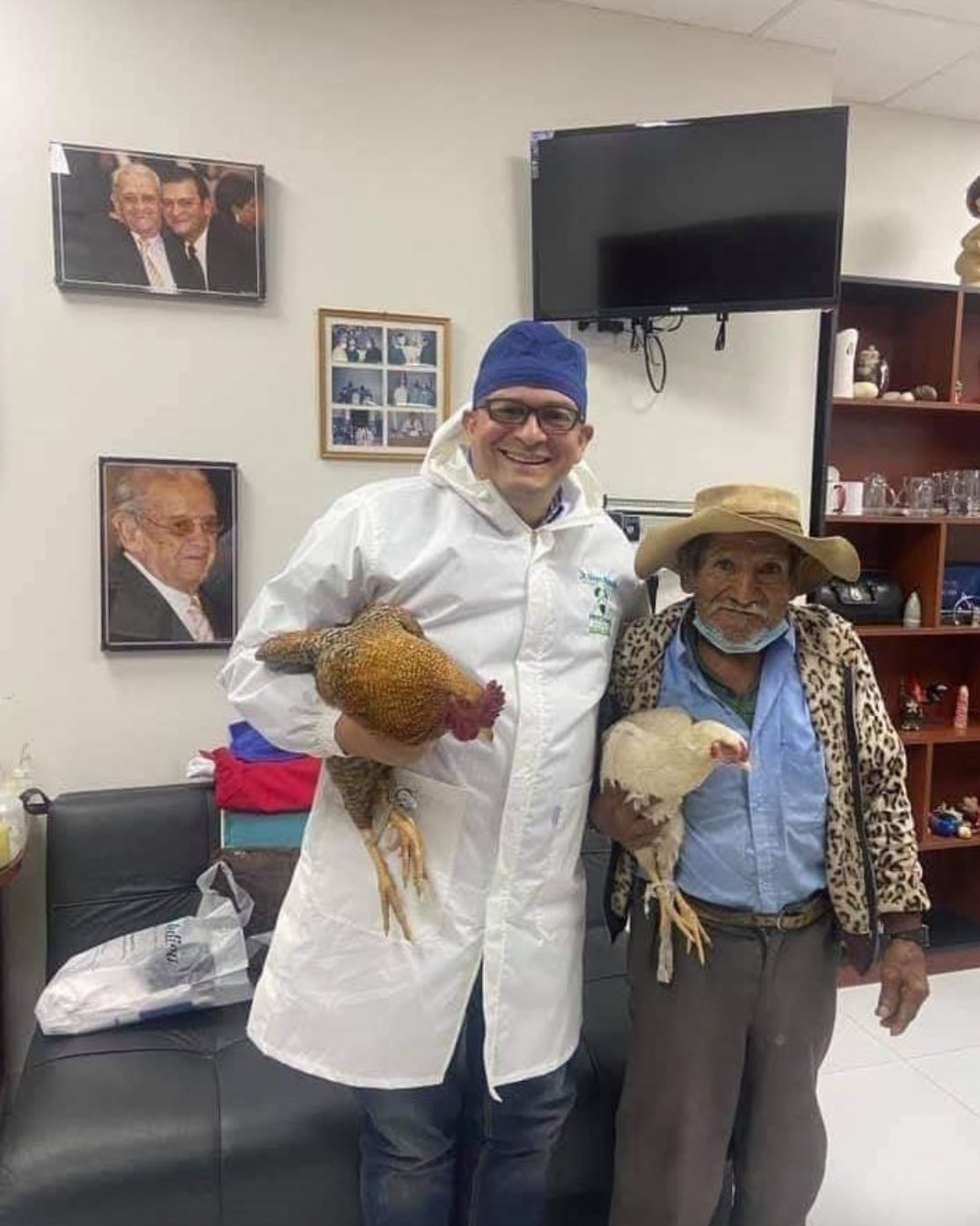Aunque el procedimiento sería gratuito, el ancianito sorprendió al doctor regalándole un par de gallinas como agradecimiento.