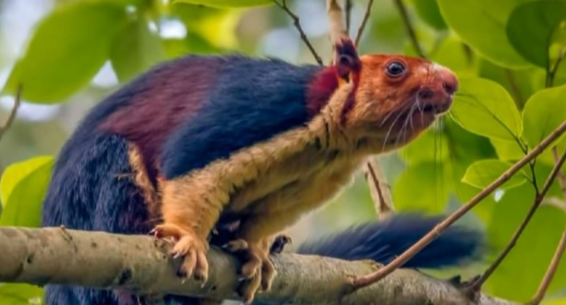 El fotógrafo Kaushik Vijayan, captó con el lente de su cámara una extraña especie de ardilla que tiene un pelaje multicolor y tiene el doble de tamaño que un ejemplar común.