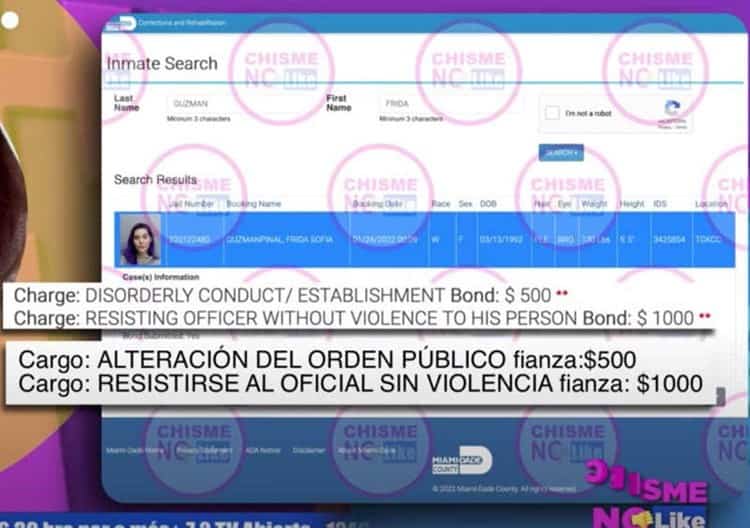 Frida deberá pagar 500 dólares por su conducta y mil dólares por resistirse al arresto, es decir, aproximadamente 30 mil pesos mexicanos en total.