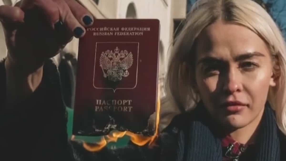 Como símbolo de protesta, una artista quemó su pasaporte de Rusia
