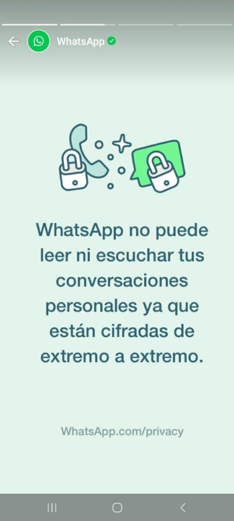 Otro mensaje es para negar que te espíen. Afirman que no te escuchen ni mucho menos leen tus conversaciones. Dicen, tal como la leyenda que siempre aparece en los chats, que las conversaciones están cifradas de extremo a extremo.