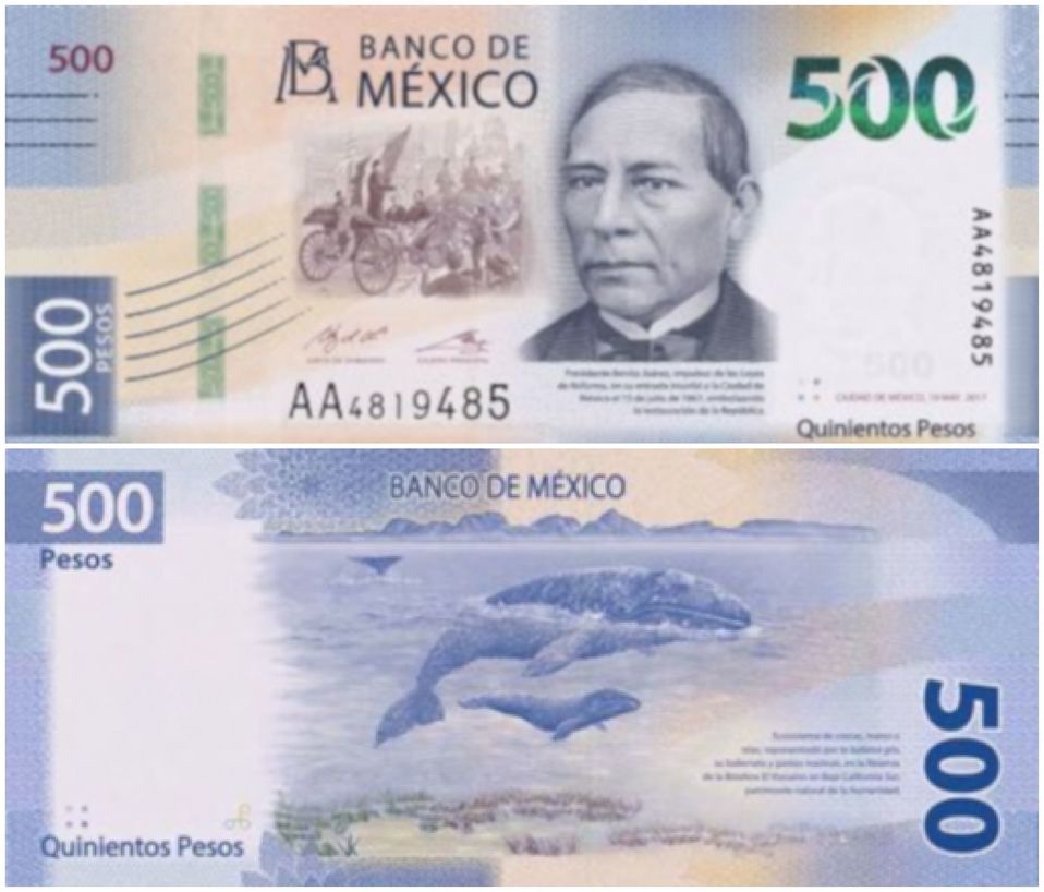 El billete de 500 pesos que tiene en su adverso el rostro del ex presidente Benito Juárez y en el reverso la vaquita marina, endémica de las costas de Baja California y que está en peligro de extinción, fue seleccionado como el segundo billete más bonito del mundo.