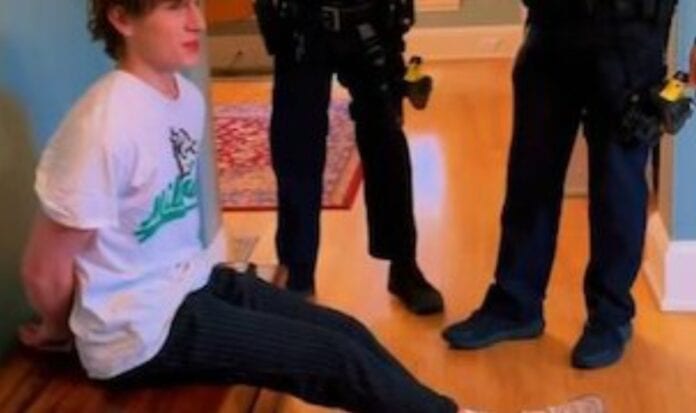 Tras irrumpir ebrio en una casa llena de policías y dormir en una cama, un joven de 19 años fue detenido por los oficiales.