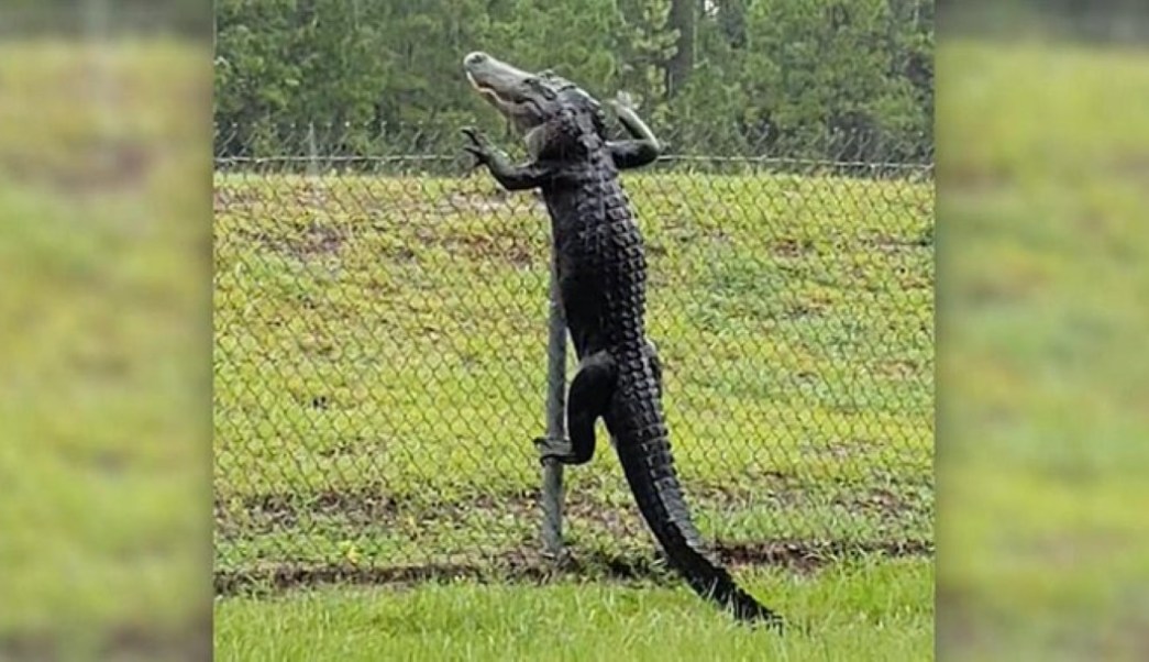Las imágenes del caimán trepador fueron captadas por Christina Stewart, quien tuvo que detenerse en una autopista de Jacsonville, Florida, para sacar su celular y comenzar a grabar este suceso tan insólito.
