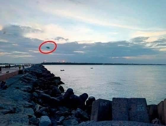 Este último también fue captado con fotografías desde la punta de las escolleras, en el cielo se puede percibir un objeto circular sobrevolando playa Miramar, zona en la que se asegura que se encuentra la ciudad “Amupac”, en dónde se encuentran naves espaciales.