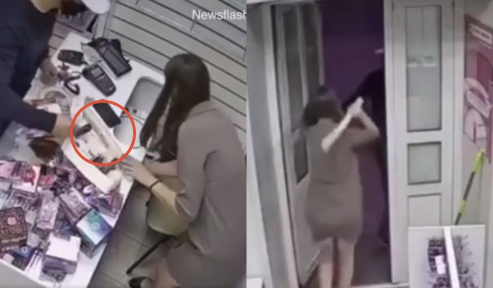 para evitar que un ladrón robara el dinero de la sex shop, una empleada usó un juguete sexual como arma de defensa. El video del momento se volvió viral en redes sociales.