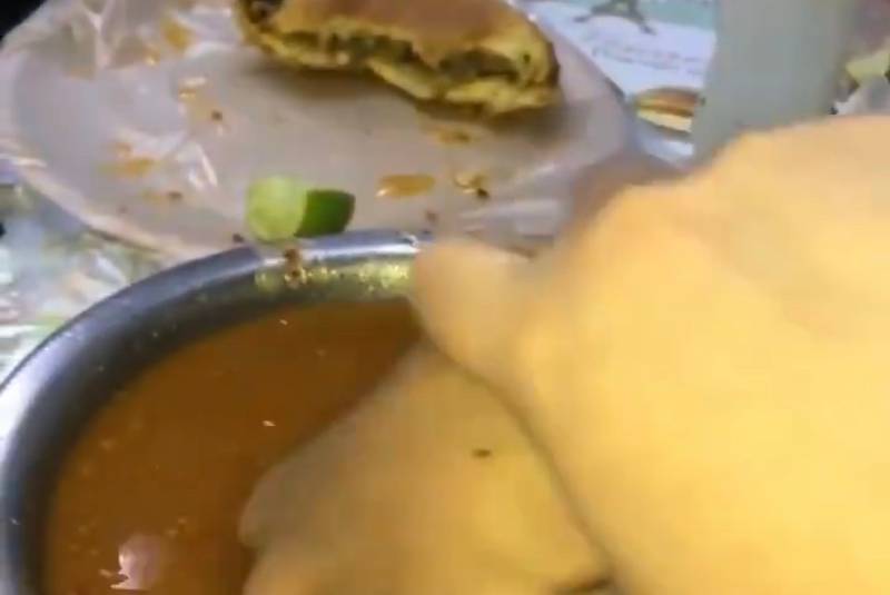 Y es que en un video que ella mismo subió a sus redes sociales se observa que está en una taquería acompañada de unos amigos y agarra la mano de alguno de ellos para meterla a un tazón de salsa e inmediatamente sacarla.