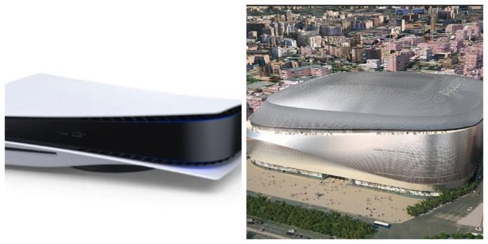 Pues además de tener un aspecto diferente a las imágenes filtradas, descubrieron que si acuestas la consola es una réplica igualita al estadio del Real Madrid, el Santiago Bernabeu.
