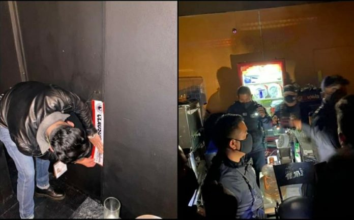 Durante un operativo para verificar que establecimientos cumplan las medidas sanitarias para evitar contagios de Covid-19, las autoridades descubrieron que los dueños del establecimiento tenían un refrigerador por el que permitían el ingreso de los clientes.