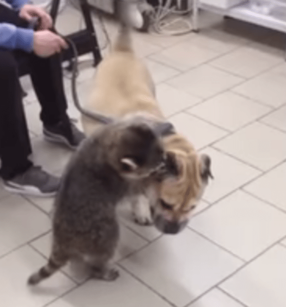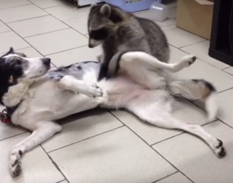 A través de un video el veterinario ruso Alex Krotov mostró a un mapache “ayudando” a sus peludos pacientes.
