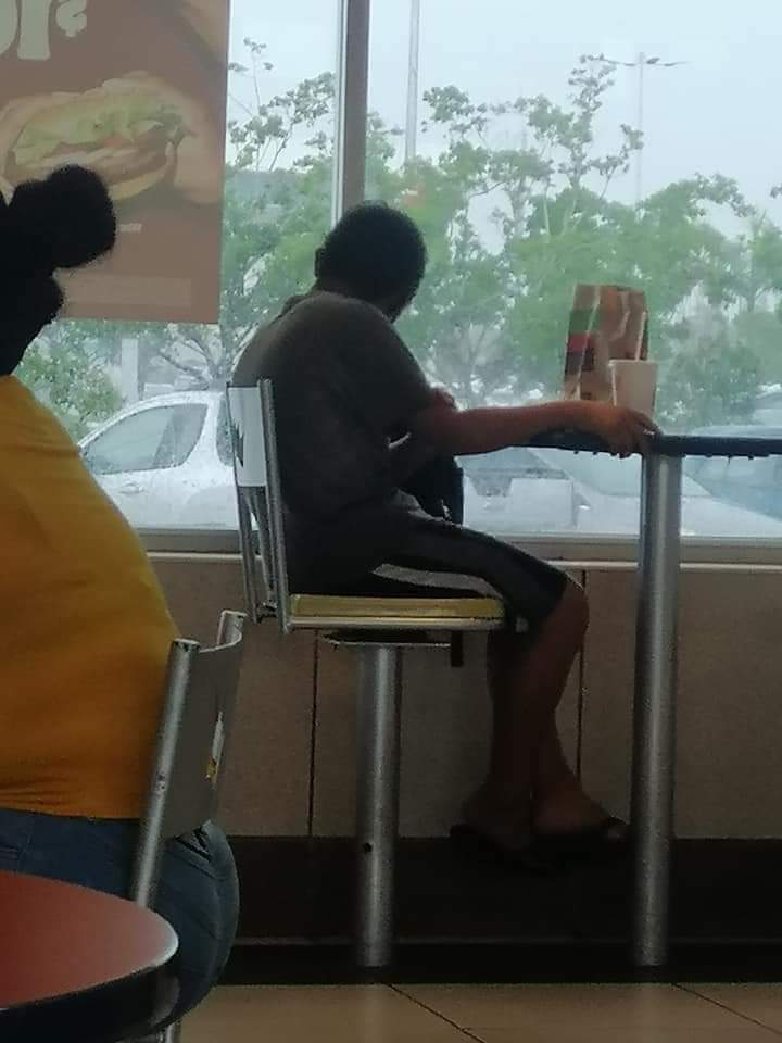 “Hoy yendo a comer una hamburguesa a Burguer King Altabrisa, me encontré a un niño resguardandose de la lluvia y le dije pasa, la primera vez no me hizo caso por miedo a que los empleados lo sacaran, se seguía mojando y le volví a tocar la ventana diciéndole que pasara, platicando con mi compañero para comprarle un combo al niño, los colaboradores se pusieron de acuerdo y le regalaron una hamburguesa con papas y refresco, lo mejor fue la cara del niño.