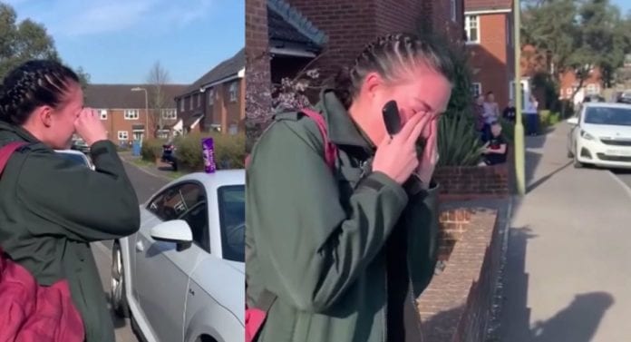 Tayla no podía creer que todas las personas de su calle, habían salido a de sus casas sólo para demostrarle el respeto y la admiración que sienten por su trabajo, lo que ocasionó que rompiera en llanto.
