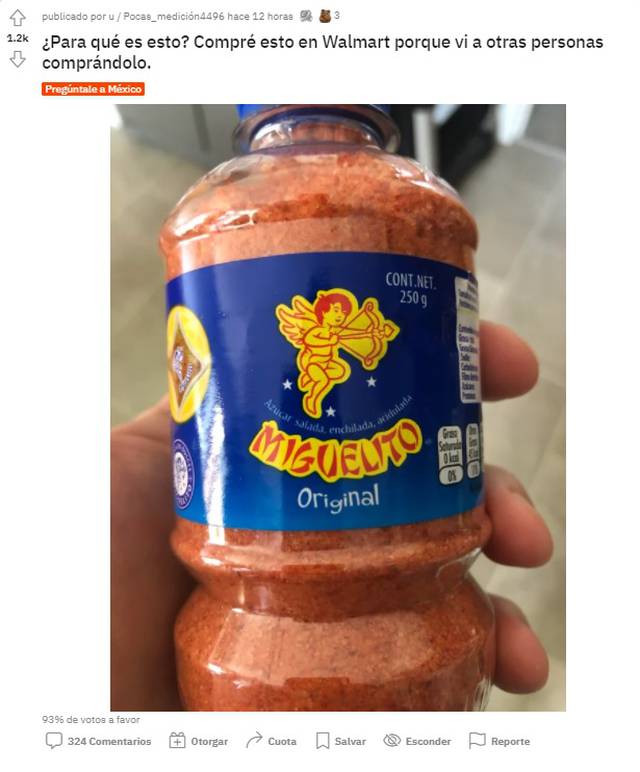 En Estados Unidos, un hombre compró una pequeña botella de Miguelito, pero no sabe cómo se utiliza. Usuarios dieron varias opciones de alimentos en los que puede usar el chile en polvo Miguelito
