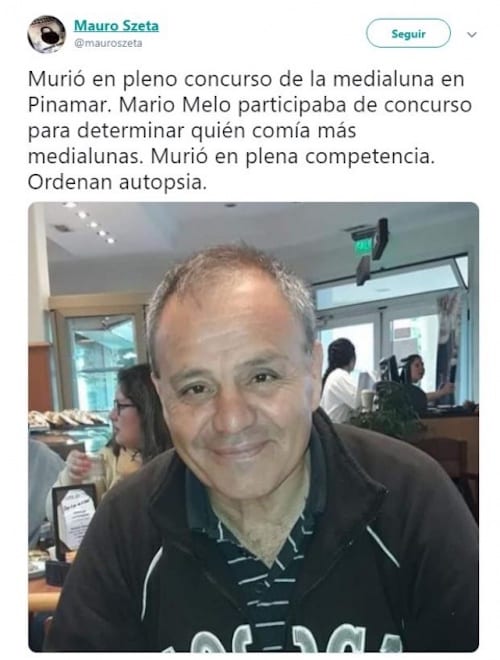 Durante el concurso, Melo se atragantó con un pan, y aunque varias personas intentaron ayudarle, incluso propinándole golpes en la espalda, no recobró el conocimiento.