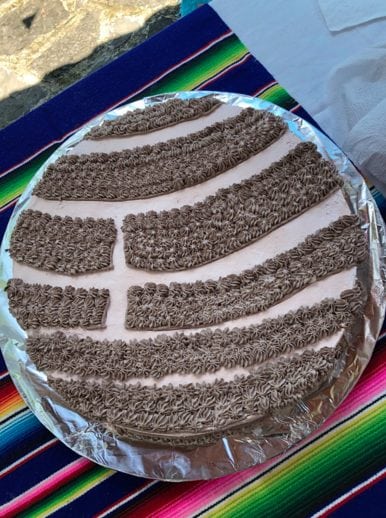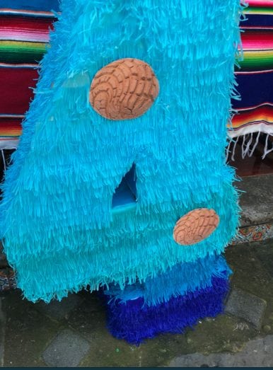 La mamá del niño puso manos a la obra y decoró su piñata con conchitas y le mandó hacer un ¡PASTEL DE CONCHA!.