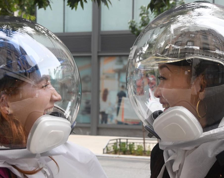 Este se trata de una burbuja transparente, que parece un casco espacial, para proteger el rostro sin cubrirlo y así evitar enfermedades; es liviana, cómoda, fácil de quitar y poner, además es compatible con FaceID.