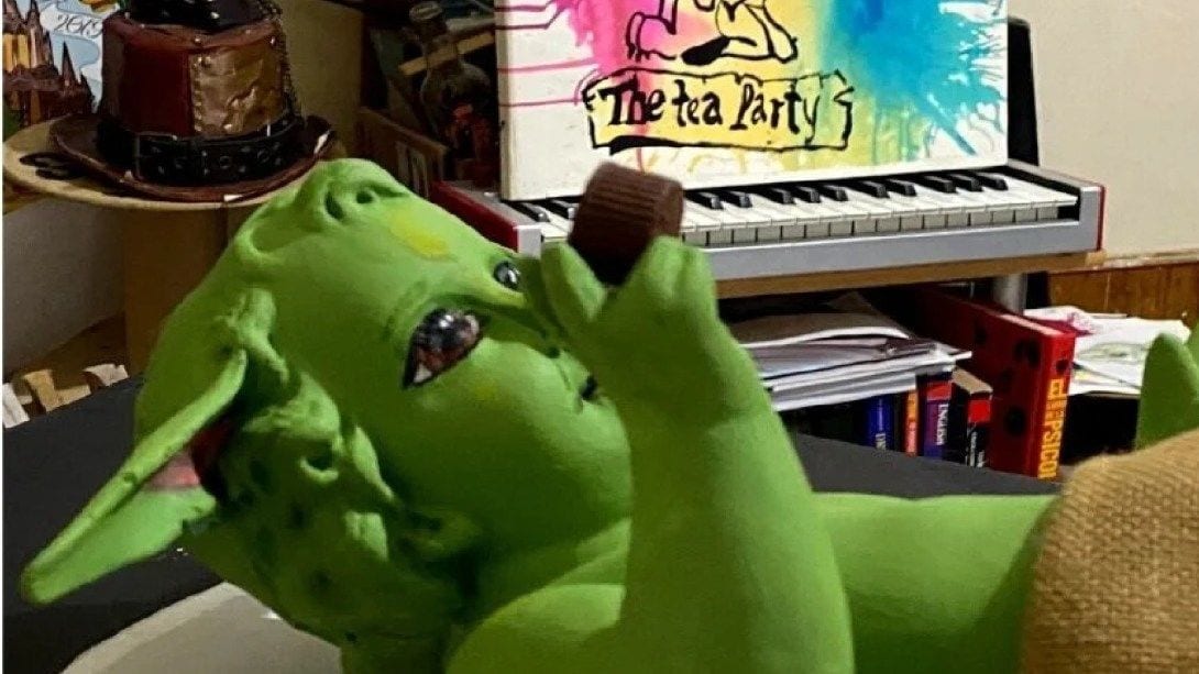 Al respecto, el artista Yurex Corp confesó “Provocar me gusta bastante”, luego de colocar pintura color verde, orejas puntiagudas de plastilina epóxica, y ojos grandes como Grogu, uno de los personajes más queridos de la serie ‘The Mandalorian’.