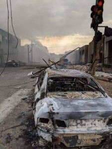 Van cuatro días y noches de violentas protestas en Mineápolis, Estados Unidos luego de la muerte de George Floyd, un afroamericano, quien fuera detenido por la Policía de ese país y que perdiera la vida luego de que un oficial lo estuviera presionando con su rodilla en el cuello.