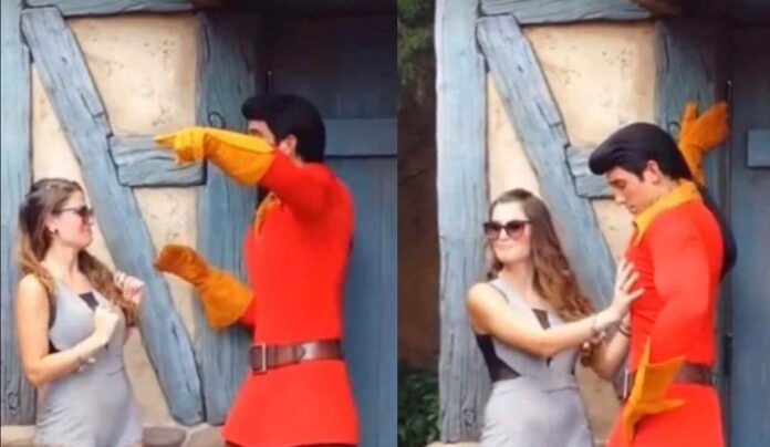 Se trtata del actor que interpreta a Gastón, protagonista de “La bella y la bestia”, quien, molesto, le solicitó a la turista se fuera.