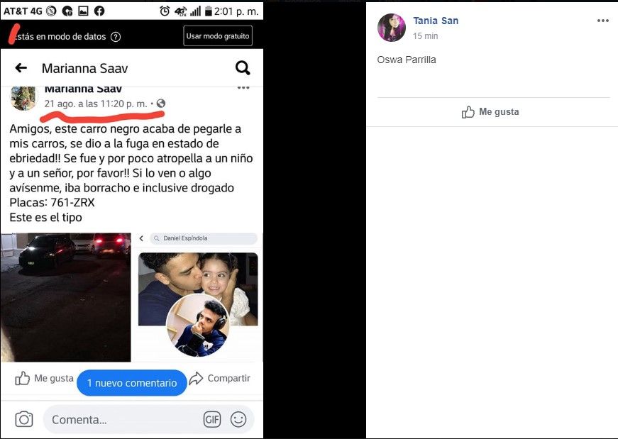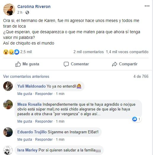 El portal Cadena Noticias, mostró publicaciones de Facebook de una joven llamada Carolina Riveron, quien lo acusa de haberla violentado cuando se fueron de fiesta.
