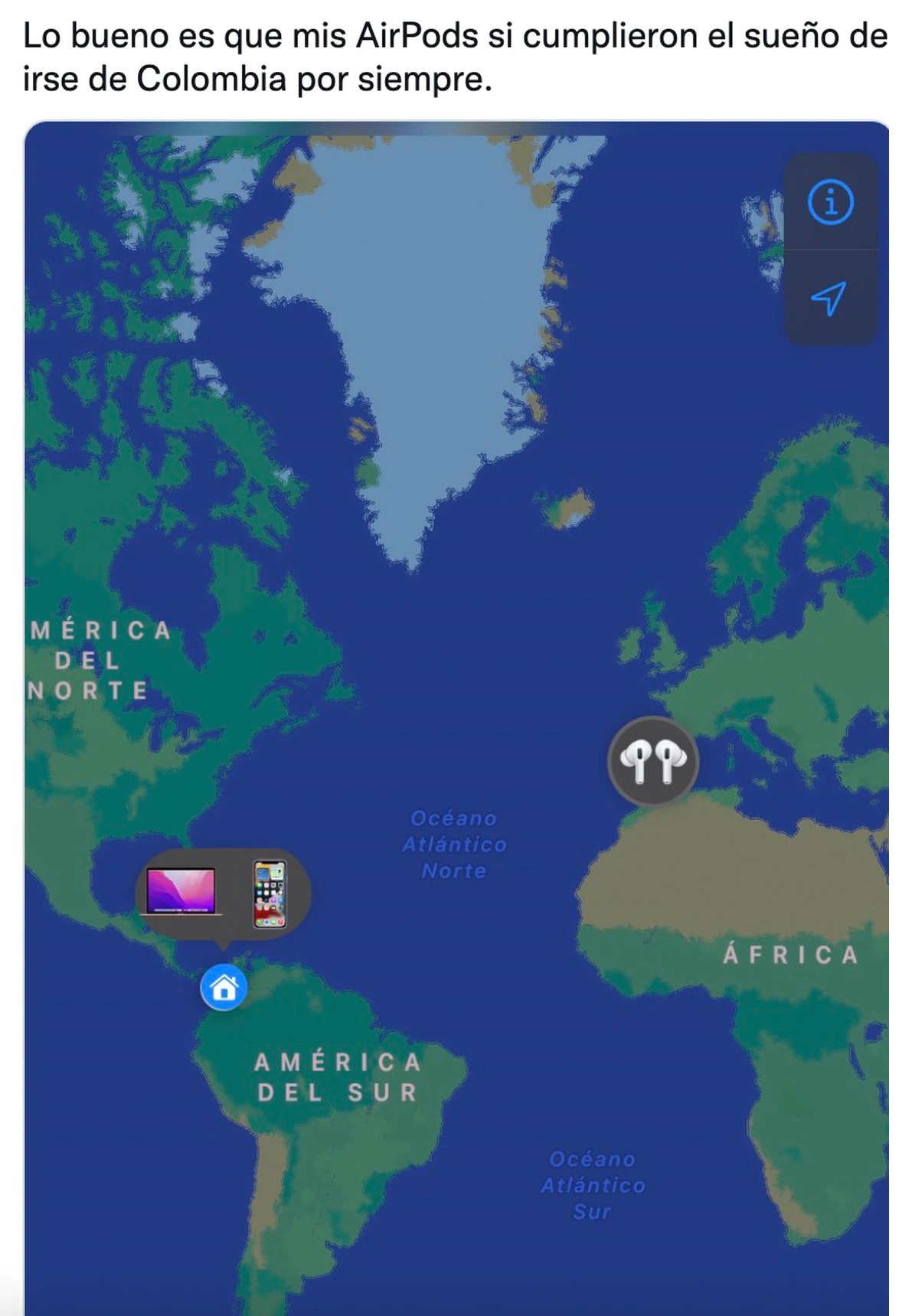 “Lo bueno es que mis AirPods si cumplieron el sueño de irse de Colombia por siempre. (sic)”