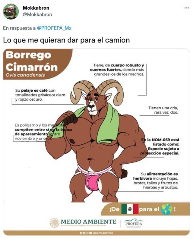 Y es que la Profepa publicó las características del borrego cimarrón, pero la ilustración que usó, no fue del agrado de los internautas y en cambio recibieron decenas de memes.
