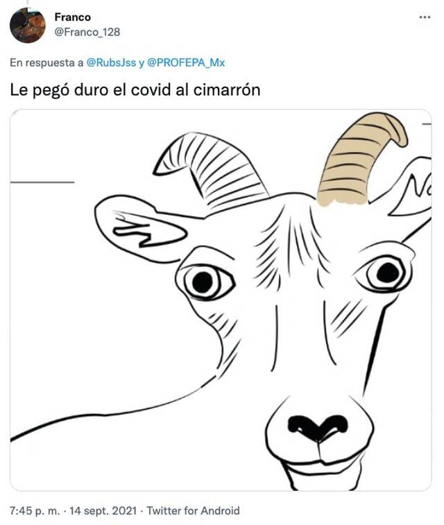 Entre los cometarios que más destacaron en redes sociales se encuentra la opinión del usuario con el dibujo de la Profepa sobre el borrego cimarrón es posterior a que enfrentara al Covid-19, por lo que tuiteó: