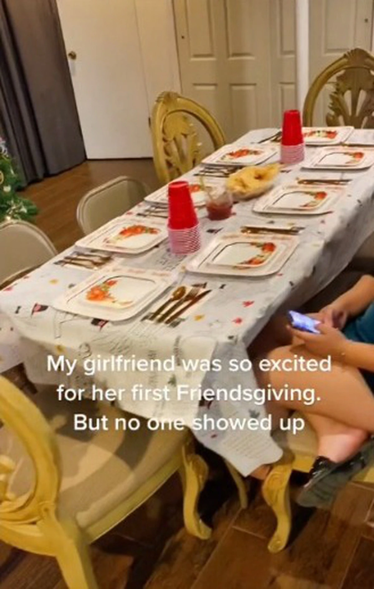 Una jovencita hizo una cena de Día de Acción de Gracias, pero nadie fue, según se muestra en un video que se hizo viral en TikTok.