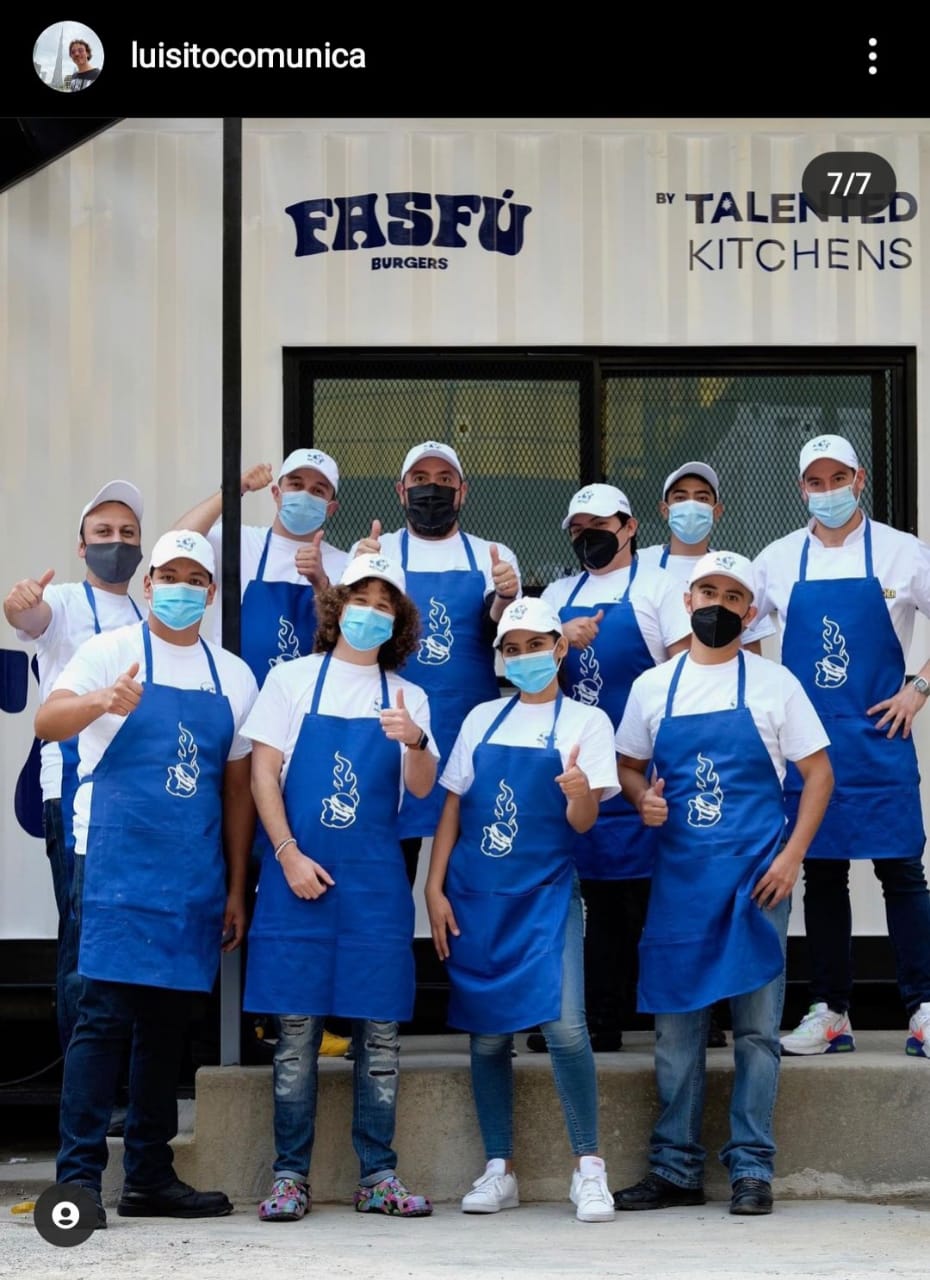 Luisito Comunica posa con el personal de Fasfu Burgers