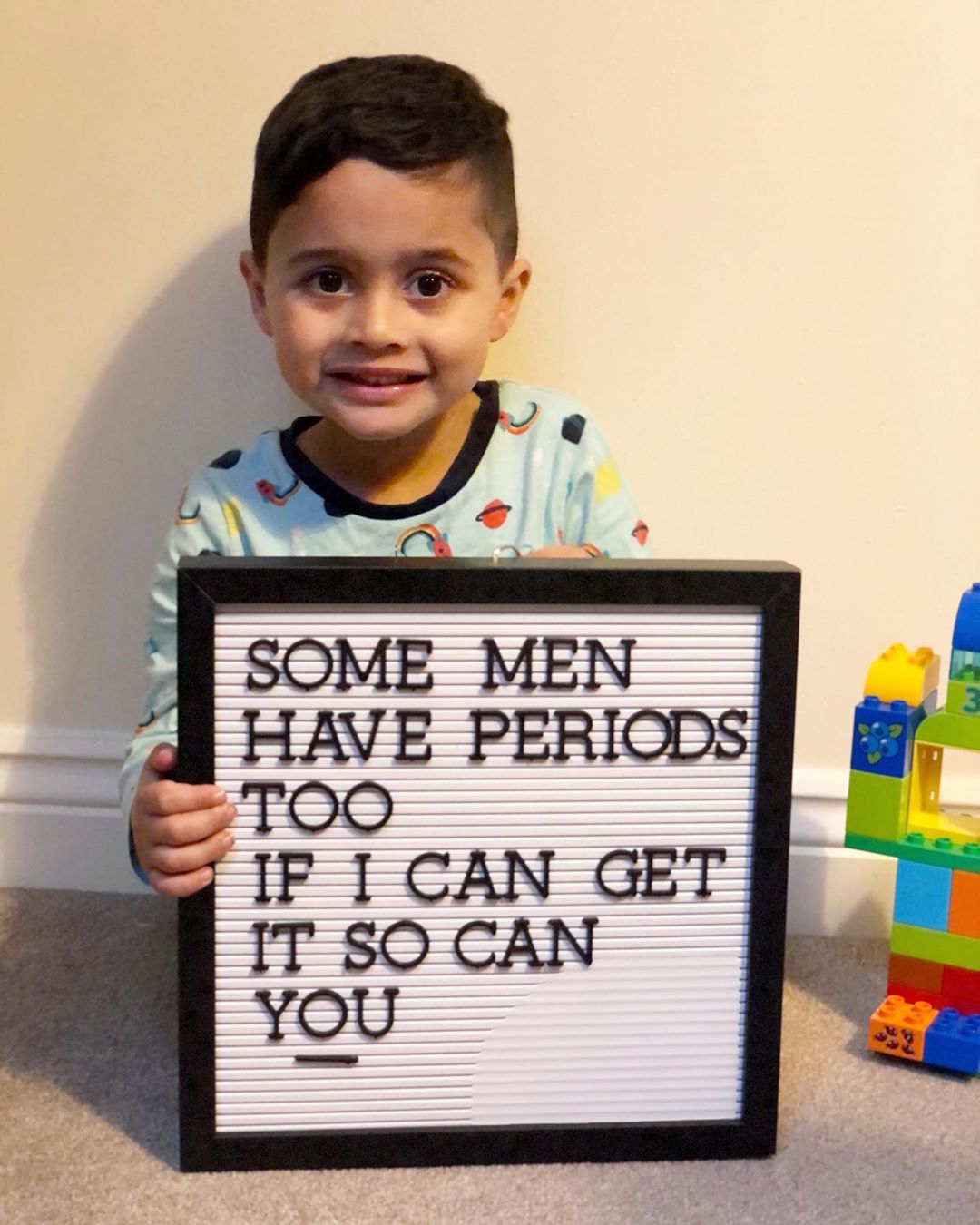 Milly también subió una hermosa foto a su perfil de Instagram con su hijo Eli sosteniendo un cartel que dice ‘Algunos hombres tienen periodos. Si yo puedo entenderlo, tú también.’