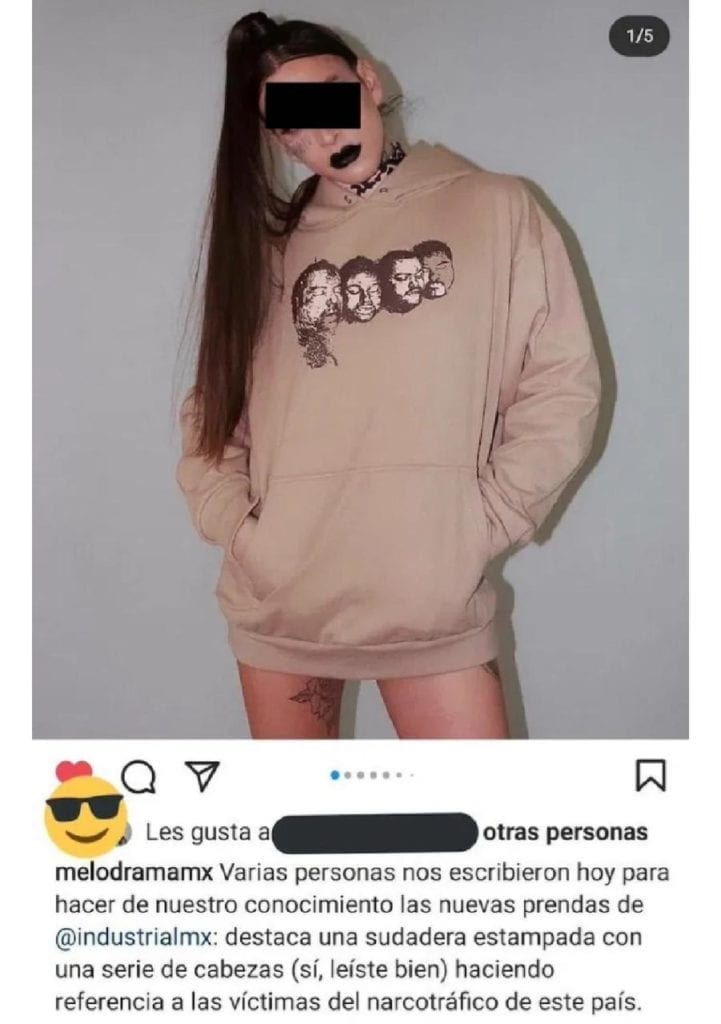Pero toda la polémica se inció cuando se viralizó una fotografía de Instagram donde se veía la sudadera con cabezas mutiladas por el narco.