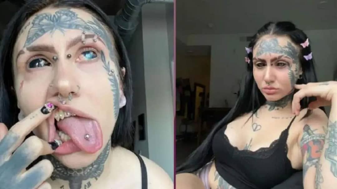 La chica ha gastado alrededor de 47 mil dólares en tatuajes, implantaciones dentales, perforaciones en todo su cuerpo e incluso ha alterado el color de sus glóbulos oculares.