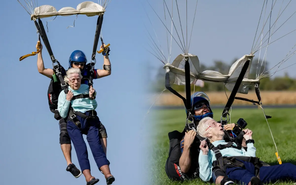 Seguro recuerdas a la mujer de 104 años que hace unos días se hizo viral por lanzarse de un paracaídas y establecer un Récord Guinness.