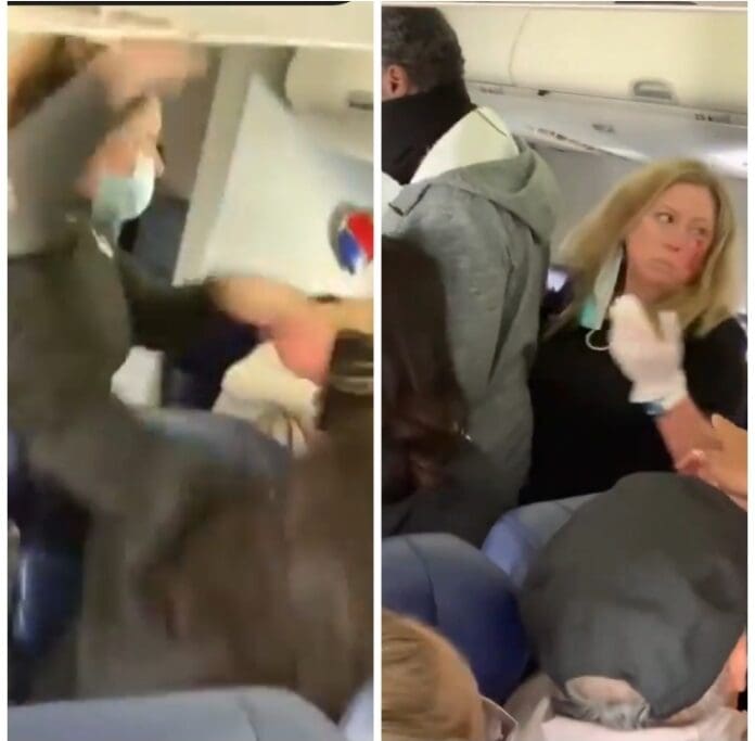 En el video captado por una pasajera, ambas mujeres discutían verbalmente por la política de usar cubrebocas a bordo del avión, pero todo se intensificó cuando le pidió mantener abrochado su cinturón de seguridad mientras el avión estaba en movimiento.