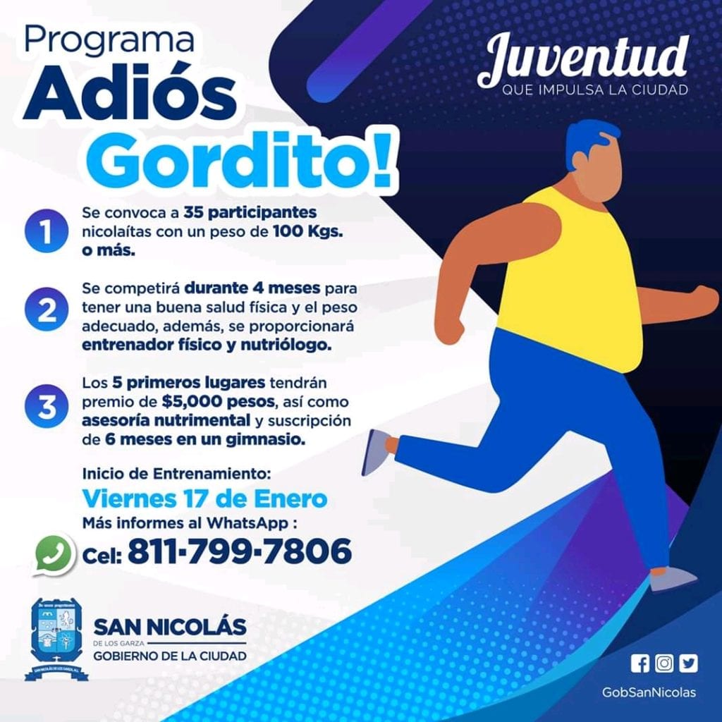 Todos sabemos que bajar de peso es una de las metas que la mayoría de las personas se pone al iniciar el año. Pues bien, el municipio de San Nicolás de los Garza, Nuevo León ha lanzado una convocatoria en su página de Facebook a todas aquellas personas que quieran bajar de peso y es que la obesidad es un problema que se presenta en cada vez más personas de todas las edades.