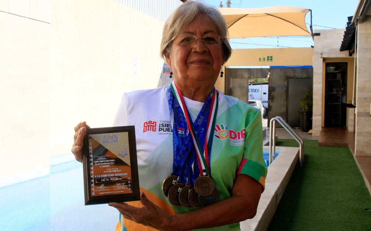 Nadadora lagunera de 77 años obtiene oro en campeonato nacional